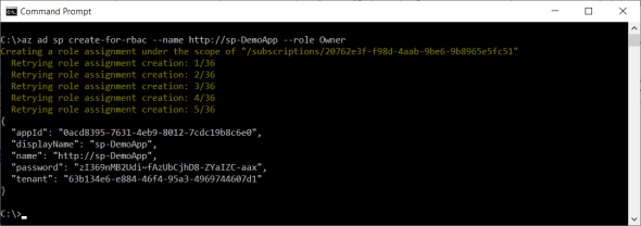 az ad sp create-for-rbac --name http://sp-DemoApp --role Owner